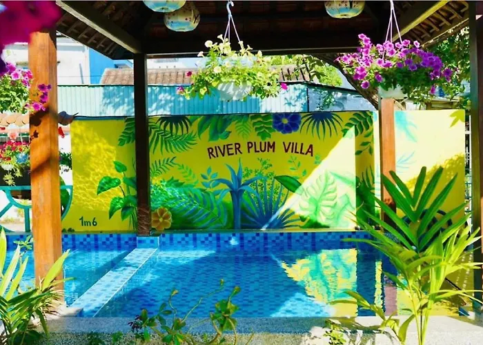 Riverside Plum Garden Villa розташовані у старовинній частині Хояна і пропонують парковку та прокат велосипедів і автомобілів. Зал засідань кантонської китайської конгрегації розташований лише за 1.5 км, а Японський критий міст - на відстані 19 хвилин пішої прогулянки від апартаментів.